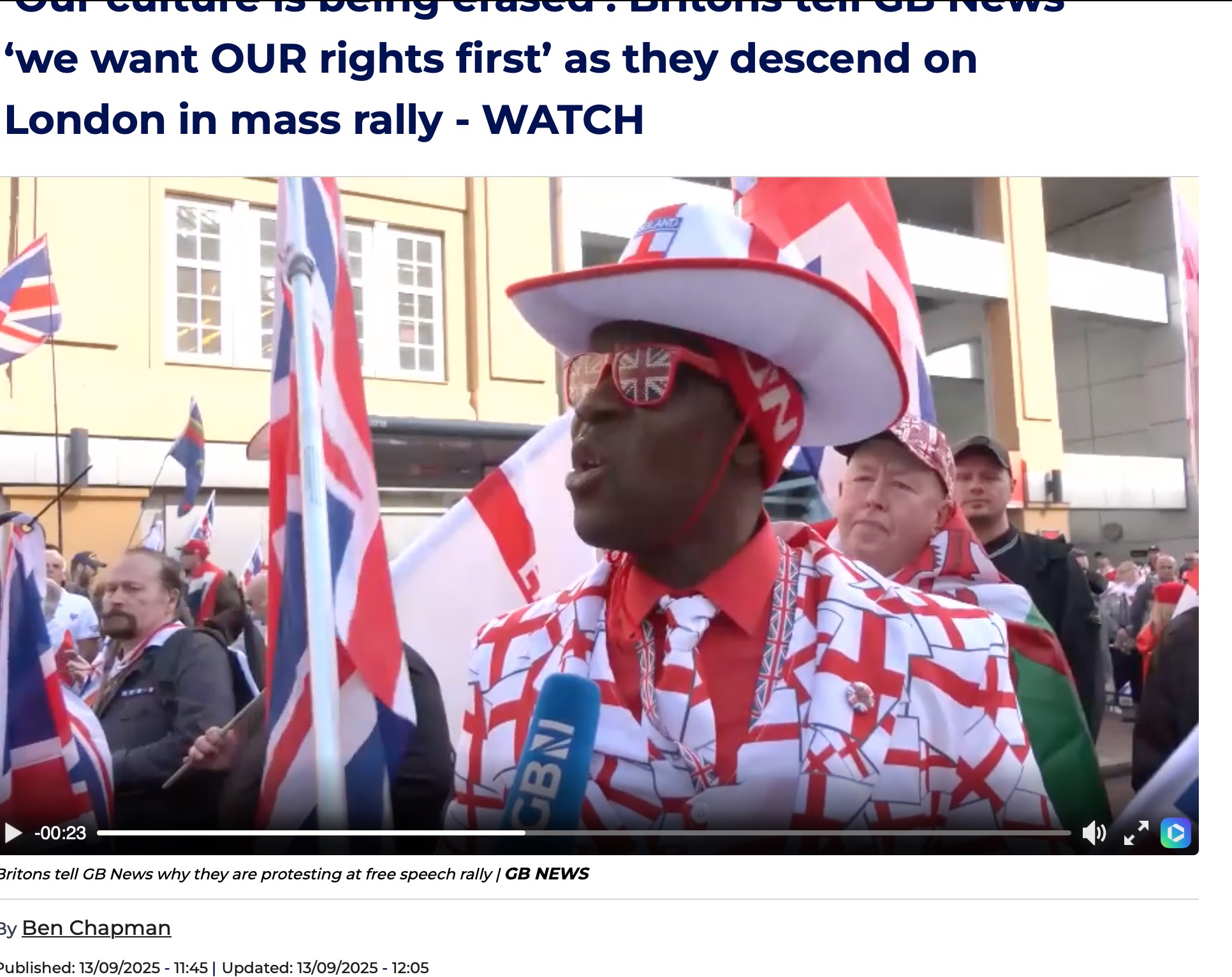Since when is being patriotic and wishing to retain your nation's culture and identity make somebody far right? It seems the BBC has taken licence to decide. We quote: "More than 100,000 people are gathering in central London for a march organised by far-right activist Tommy Robinson, with a counter protest by anti-racism campaigners also taking place." No article just a question